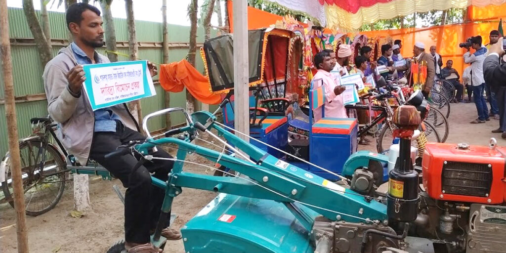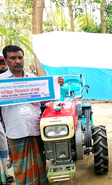 কলের লাঙ্গল পেয়েছেন ফটিকছড়ির তকির হাট এলাকার মো. সেলিম উদ্দিন। তিনি এ প্রতিবেদককে জানান- তরি-তরকারি ও ধান চাষে কাজ করতে-করতে জীবনের অনেকটা সময় পার করেছি। ঘরে বৃদ্ধা মা, স্ত্রী ও তিন সন্তান। সন্তানদের লেখাপড়াসহ সবার ভরণ পোষণ যেন একটু কষ্টকর বটে। শাহানশাহ হযরত সৈয়দ জিয়াউল হক মাইজভাণ্ডারী (কঃ) ট্রাস্ট হতে একটি কলের লাঙ্গল পেয়েছি। নিজের জমি-জমা না থাকলেও সংসারে অভাব কাটিয়ে উঠেছি। দারিদ্র্য বিমোচন প্রকল্প থেকে প্রাপ্ত এ কলের লাঙ্গল দিয়ে আমি শুধু জমির চাষ নয়, ট্রলি বানিয়ে গড় মৌসুমে বিভিন্ন মালামাল বহন করে থাকি। এতে আয়ের পথ আরো সুগম হয়েছে।