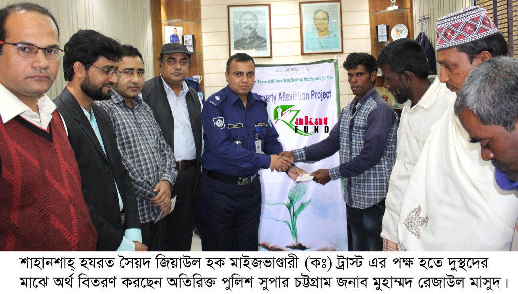শাহানশাহ হযরত সৈয়দ জিয়াউল হক মাইজভাণ্ডারী (কঃ) ট্রাস্ট পরিচালিত দারিদ্র্য বিমোচন প্রকল্প এর ব্যবস্থাপনায় স্বনির্ভরতা অর্জনে ৪ জনকে ধান মাড়াইয়ের মেশিন ক্রয়ে ১ লক্ষ ২৮ হাজার টাকা প্রদান করা হয়।
